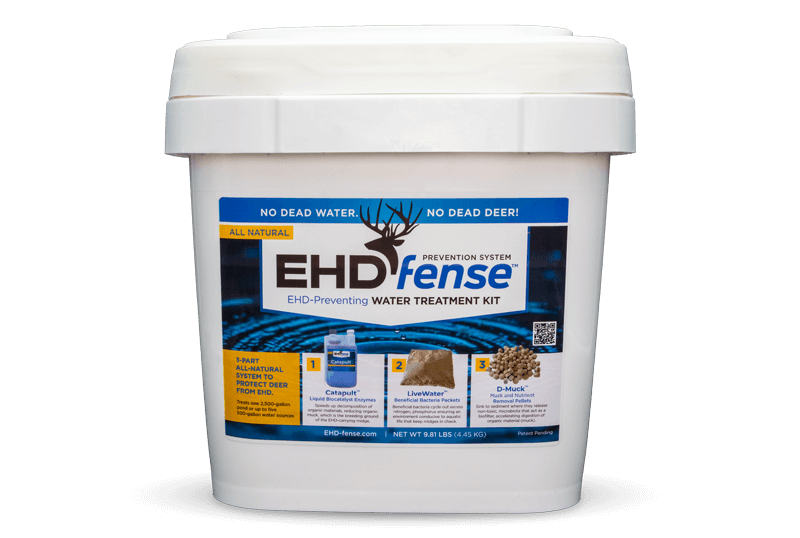 EHD-fense™ is the first all-natural water treatment kit specifically designed to prevent EHD in whitetail deer by restoring balance to your water sources.